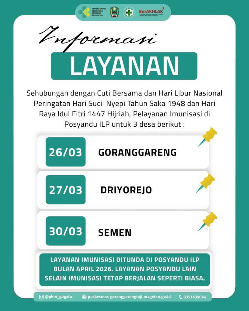 Sebagai tambahan informasi, layanan imunisasi untuk 3 desa ditunda di bulan April ya, swipe untuk detailnya.